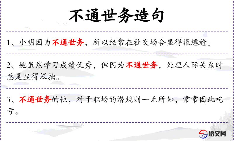 - 不通世务:不谙世事、不识时务
