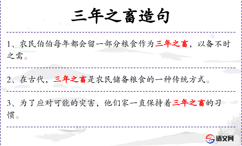2. 【三年之畜】 - 古指国家必备的三年的储积。