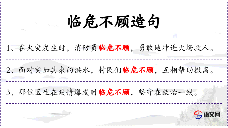 1. 【临危不顾】 临:遇到;危:危险。遇到危难的时候,一点也不怕。