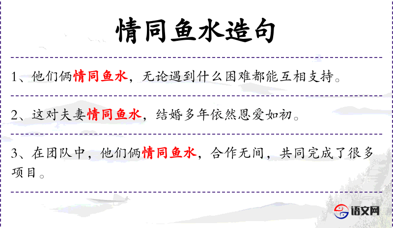 文化意义:“情同鱼水”是一个成语,源自《庄子·外物》:“鱼相忘于江湖,人相忘于道术。”比喻人与人之间的关系非常融洽,如同鱼和水一样不可分离。 成语典故**:这个成语强调了人与人之间的和谐关系,特别是在工作环境中的重要性。