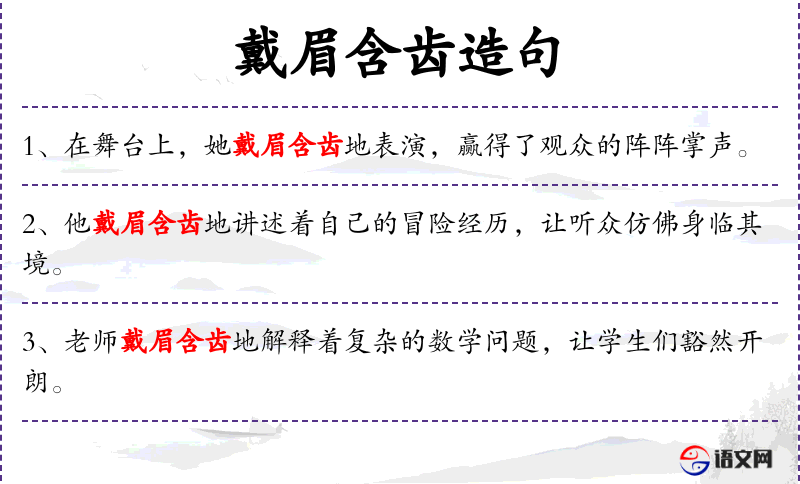 - 状语:戴眉含齿地
