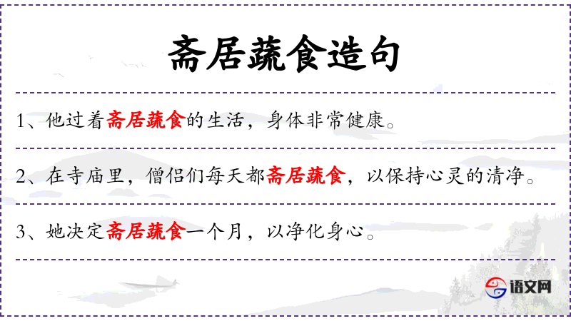 - 斋居蔬食:指不食用肉类,以蔬菜为主的饮食方式。