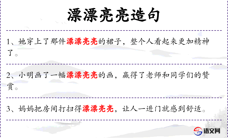4. 【漂漂亮亮】 指外形美观,鲜明。