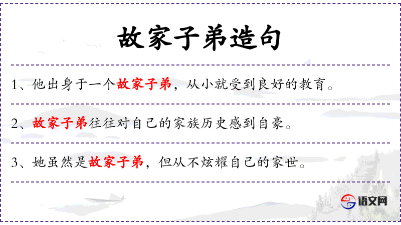- 宾语:她的故家子弟背景