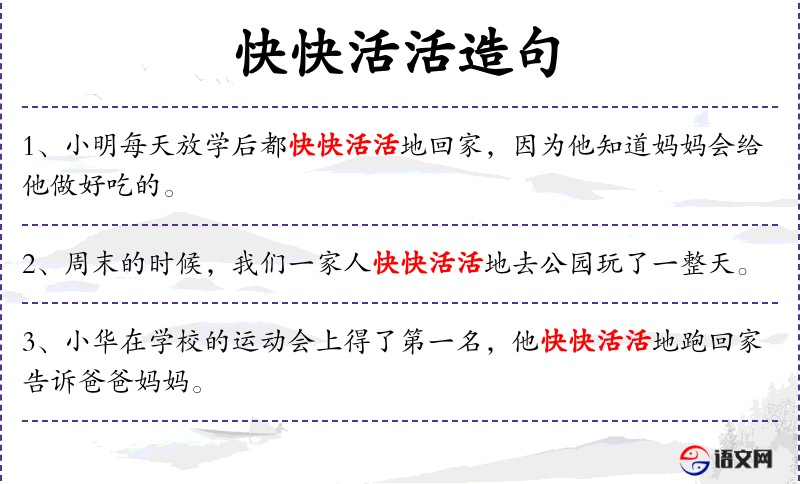 - 快快活活地:形容词短语,表示非常快乐和轻松的状态。