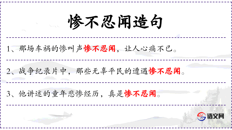 - 惨不忍闻:形容事情极其悲惨,让人不忍心听闻。