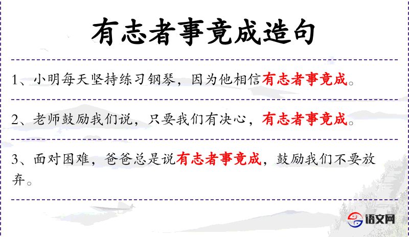4. 【有志者事竟成】 - 只要有决心,有毅力,事情终究会成功。