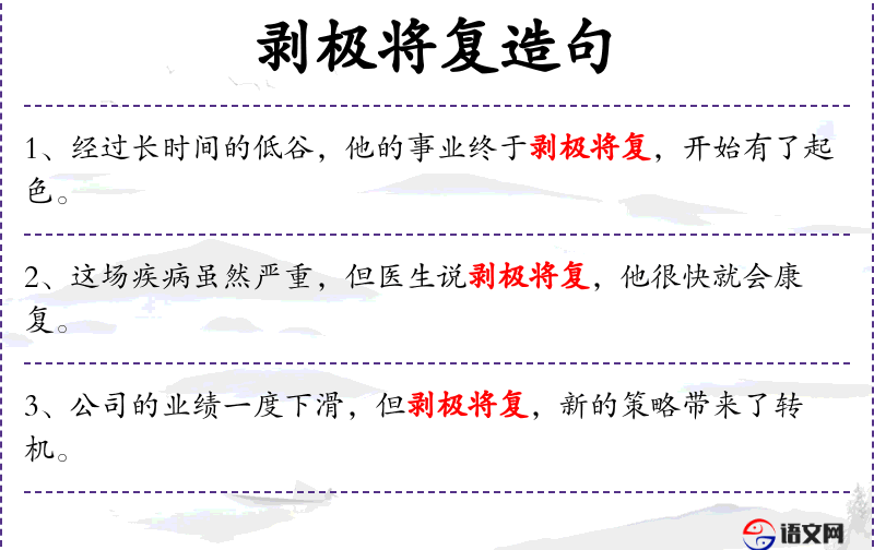 - 剥极将复:这个成语源自**古代哲学,强调事物发展到极点后会有所转变。