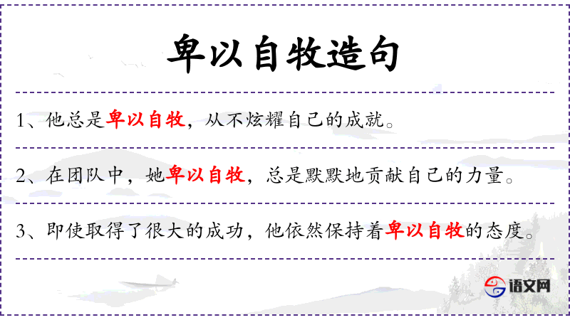 - 卑以自牧:指谦卑地自我修养,源自《易经》。