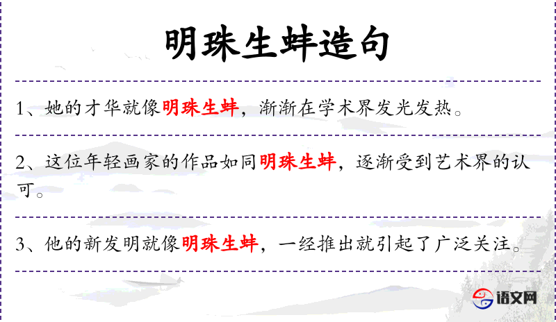 - 明珠生蚌:比喻珍贵的事物或人才从平凡中脱颖而出。
