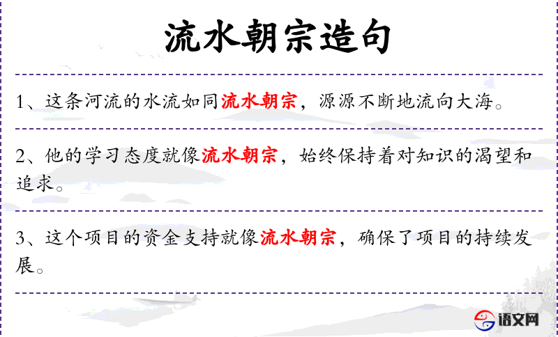 6. 【流水朝宗】 朝宗:原指古代诸侯天子,借指百川入海。比喻人心所向。