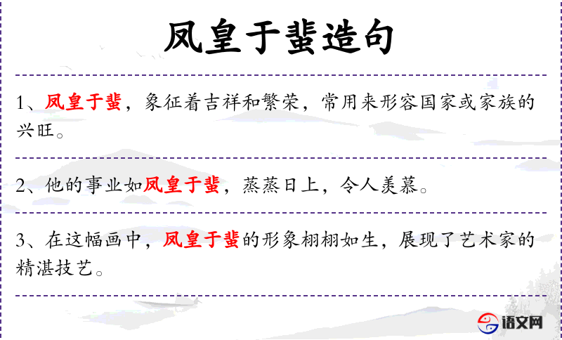 - “凤皇于蜚”这个成语源自古代文化,凤凰在文化中是吉祥和美好的象征。