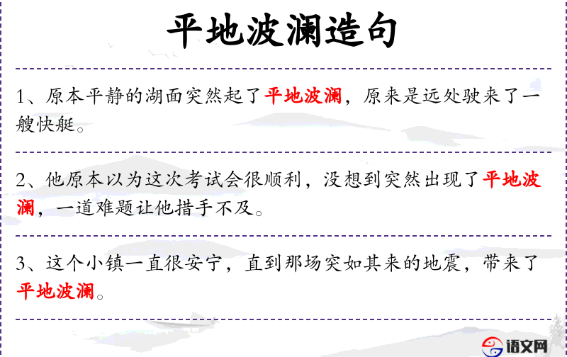 - 平地波澜:成语,比喻平静的事物突然发生了变化。
