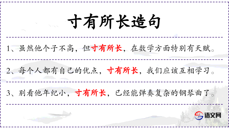 - 寸有所长:这个成语源自**古代,强调每个人都有自己的长处,不应被忽视。