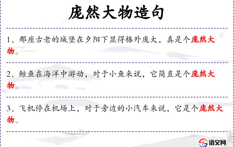 - 庞然大物:形容物体非常巨大,通常用来形容给人压迫感的物体。