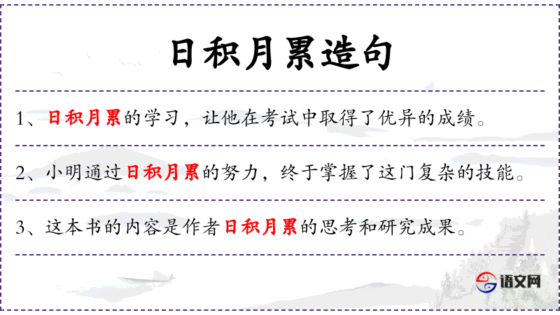 - 日积月累:表示长时间持续不断的积累。