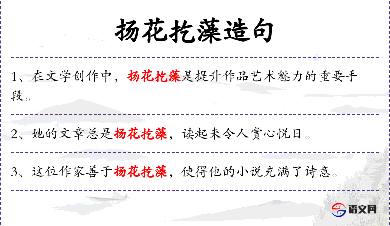 句子:“[她用扬花扢藻的手法,将平凡的日常描绘得如诗如画。]”