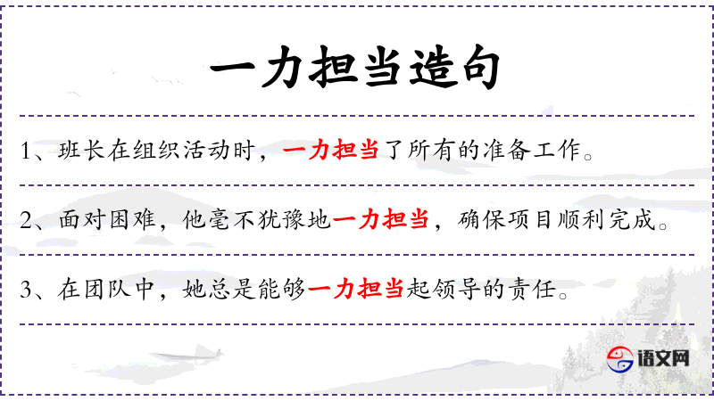 1. 【一力担当】 - 一力:尽全力。尽全力承担责任。