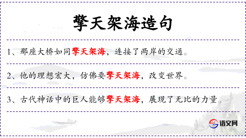 “擎天架海”是一个富有**文化特色的成语,源自古代神话传说,常用于比喻极大的事业或计划。