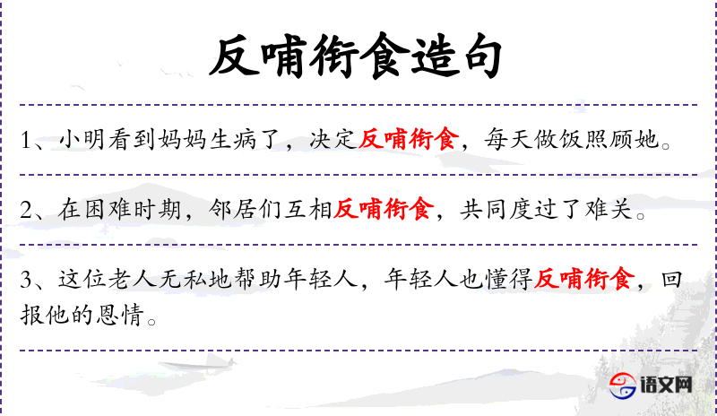 - 反哺衔食:比喻回报社会或帮助他人,特别是指前辈对后辈的培养。 *. 培养:指教育和训练,使成长。