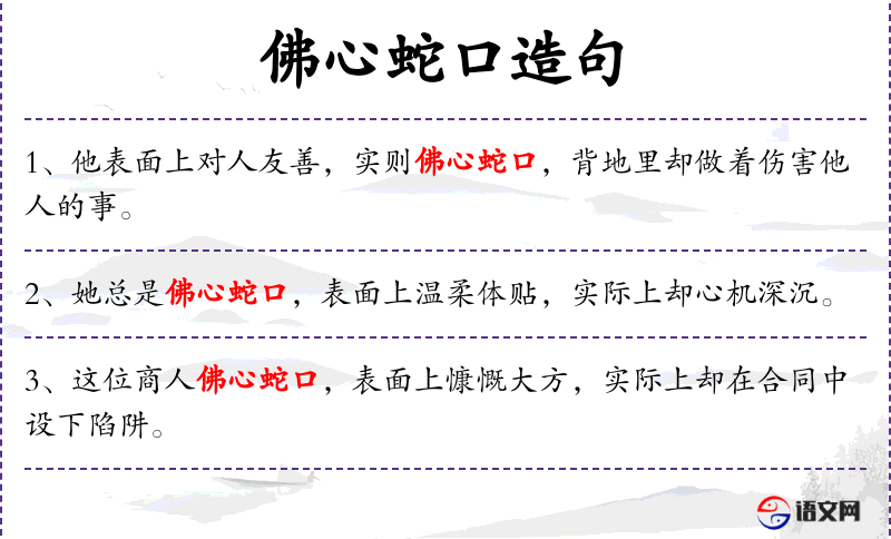 - 同义词:佛心蛇口 → 口蜜腹剑