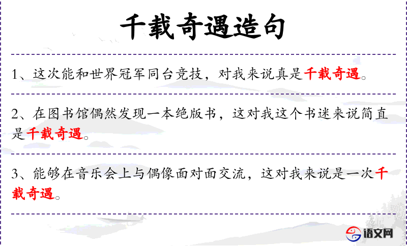 1. 【千载奇遇】 形容极其难得遇到。