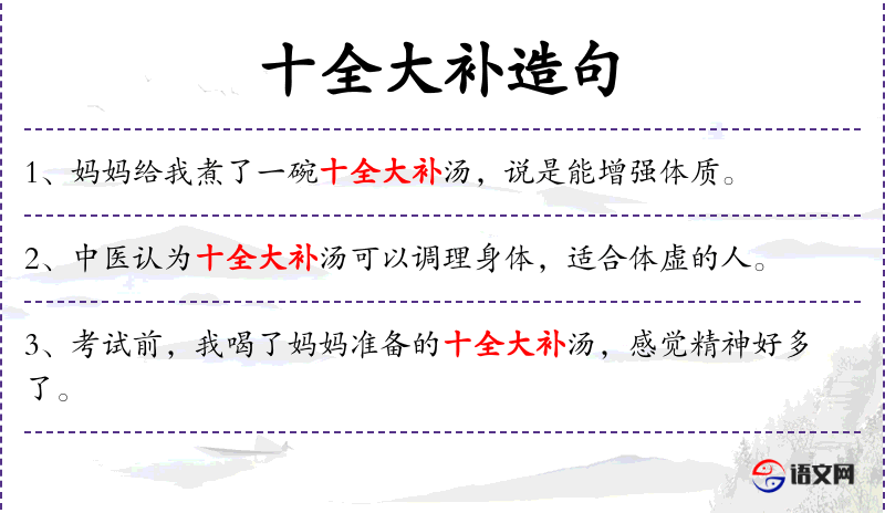 - 在不同语言中,句子的结构和用词可能有所不同,但核心信息保持一致,即强调“十全大补汤”的历史和功效。