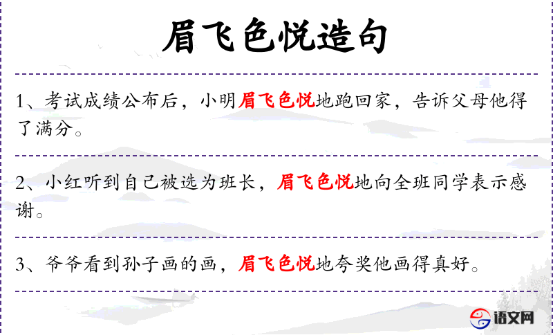 1. 【眉飞色悦】 - 形容人非常得意兴奋的样子。