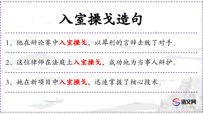 - 入室操戈:成语,原意是指进入别人的屋子拿起武器,比喻在比赛中采取积极主动的策略或手段。