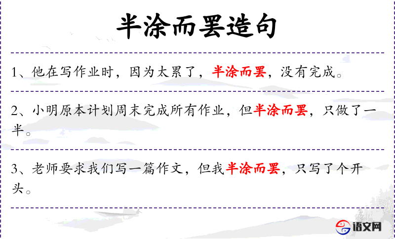 - 半涂而罢:中途停止。