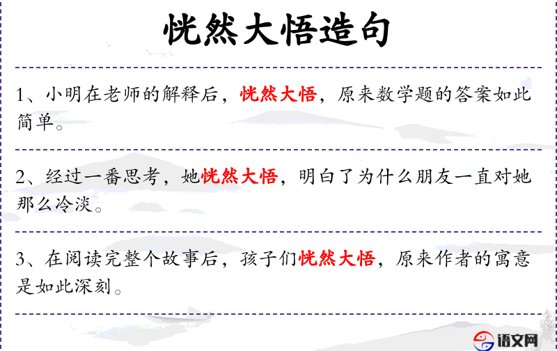 - “恍然大悟”是一个常用的成语,描述突然明白某个道理或情况。这个成语在**文化中很常见,常用于描述人们在经过一段时间的困惑后突然理解了某个问题。