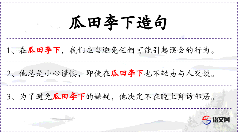 2. 【瓜田李下】 - 比喻容易引起嫌疑的场合。
