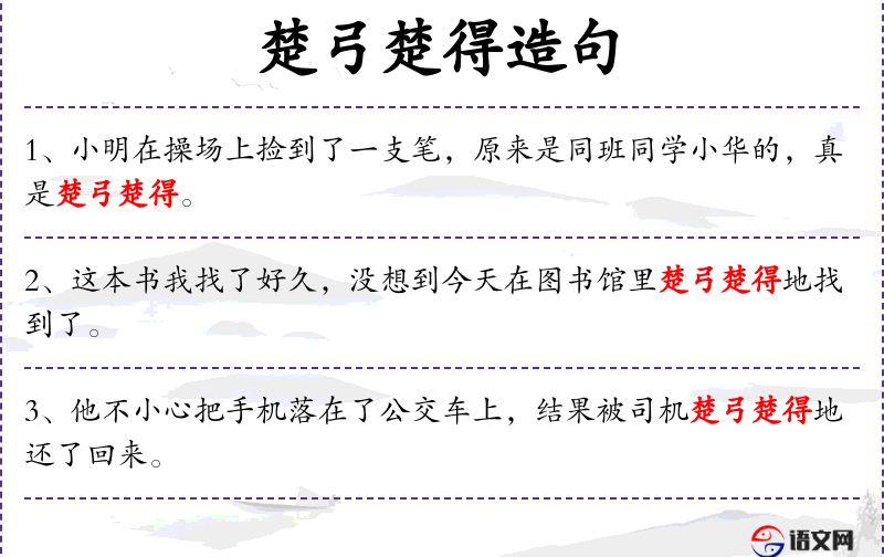 2. 【楚弓楚得】 楚国人丢失弓,拾到的仍是楚国人。比喻自己的东西虽然丢了,拾到它的人并不是外人。