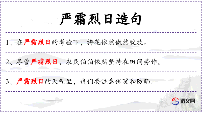 - 状语:在严霜烈日的环境下