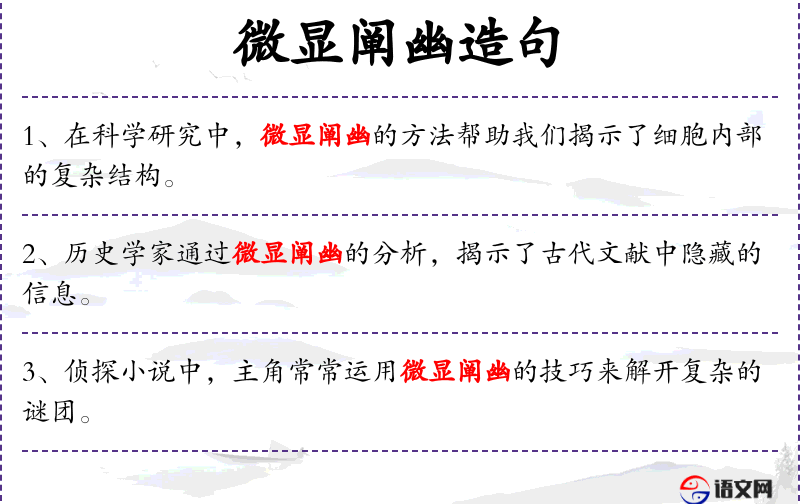 句子:“在科学研究中,微显阐幽的方法帮助我们揭示了细胞内部的复杂结构。”