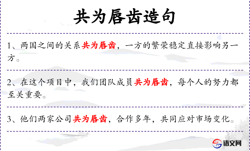 - 文化背景:在**文化中,“唇齿”常用来比喻关系密切,如“唇亡齿寒”。