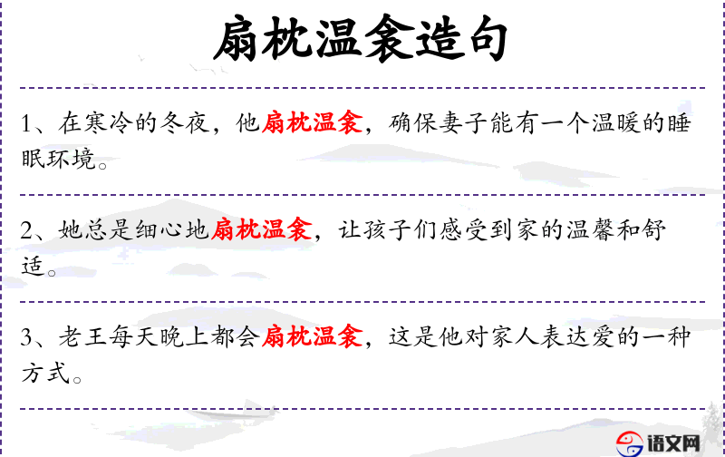 句子:“她用扇枕温衾的方式,传递着对家人的关爱和温暖。”