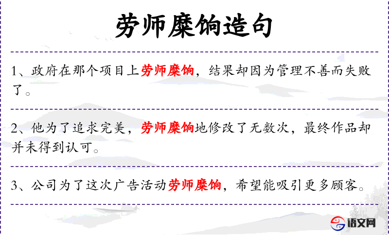 - 状语:为了推广新产品劳师糜饷