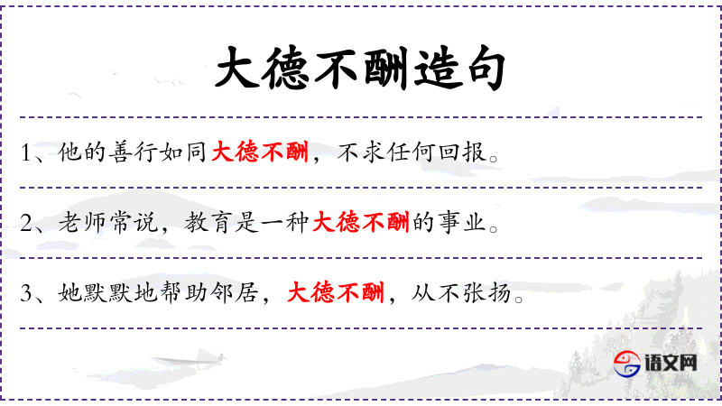 句子:“他的善行如同大德不酬,不求任何回报。”