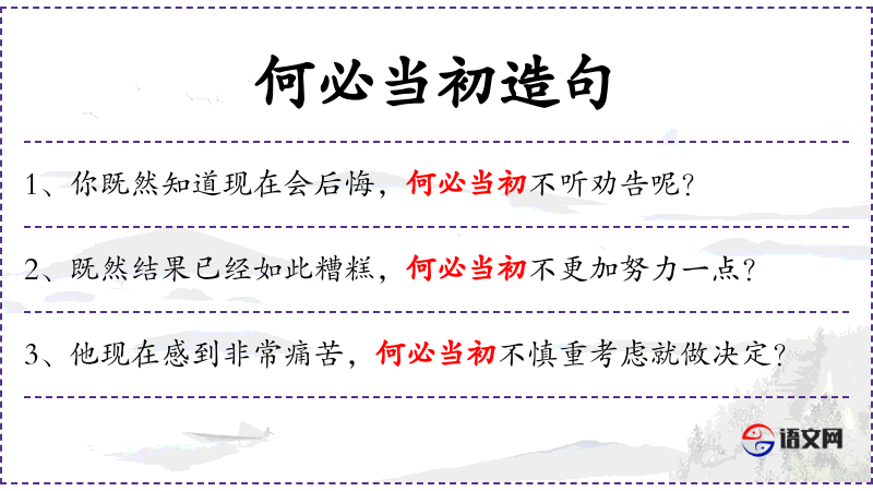 1. 【何必当初】 表示后悔过去的作为。
