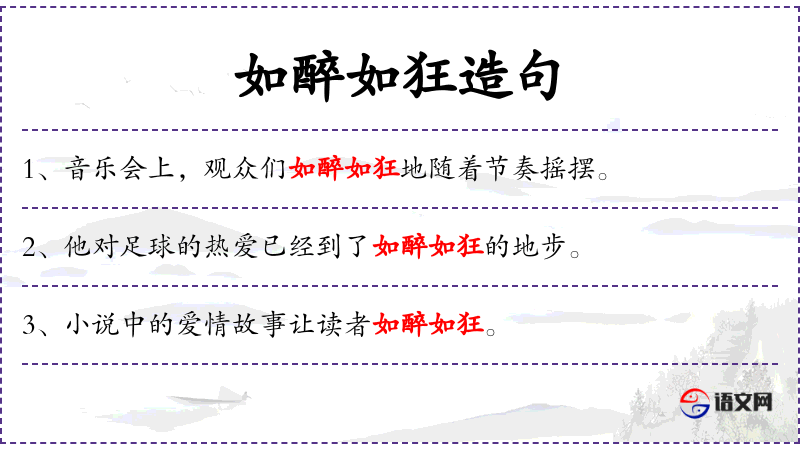 - 如醉如狂:形容非常陶醉、兴奋的状态。