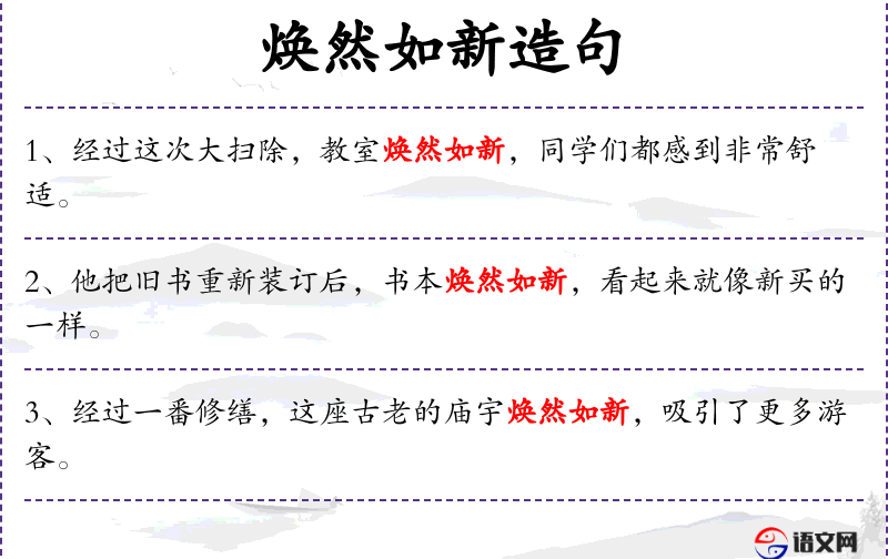 7. 【焕然如新】 改变旧面貌,出现崭新的气象。同“焕然一新”。