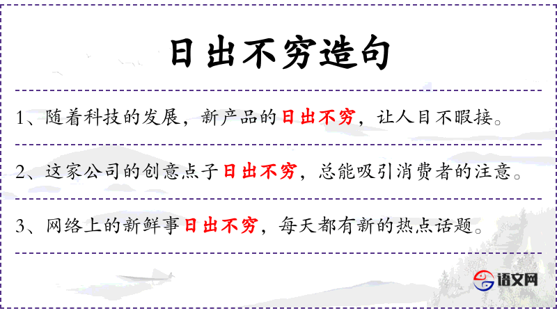 - 谓语:“日出不穷”、“总能让大家在紧张的工作中放松一下”