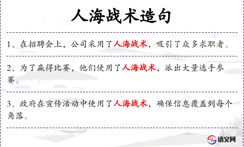 - 人海战术:在**历史上,这种战术常用于军事或政治宣传中,体现了一种集体主义和动员能力的文化特点。