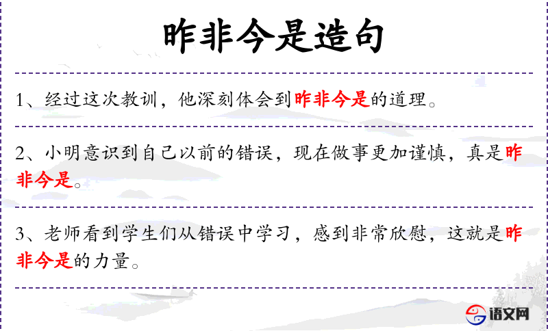 4. 【昨非今是】 - 非:不对,错误;是:对,正确。现在是对的,过去是错的。