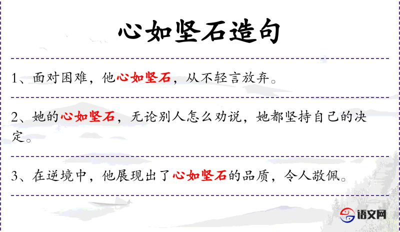 - “心如坚石”在**文化中常用来形容人的意志坚定,不易动摇。