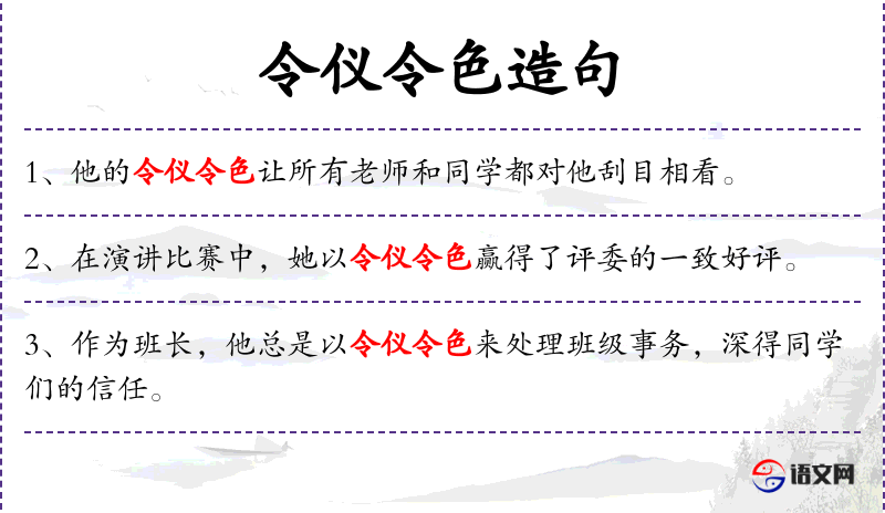 - 令仪令色:这个词组可能指的是某人的仪态和表情非常优雅和吸引人。