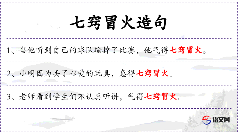 “七窍冒火”是一个中文成语,源自古代医学理论,认为人体有七窍(眼、耳、鼻、口),当人极度生气或着急时,这些窍会“冒火”。这个成语在中文中常用来形容极度愤怒或焦虑的情绪。