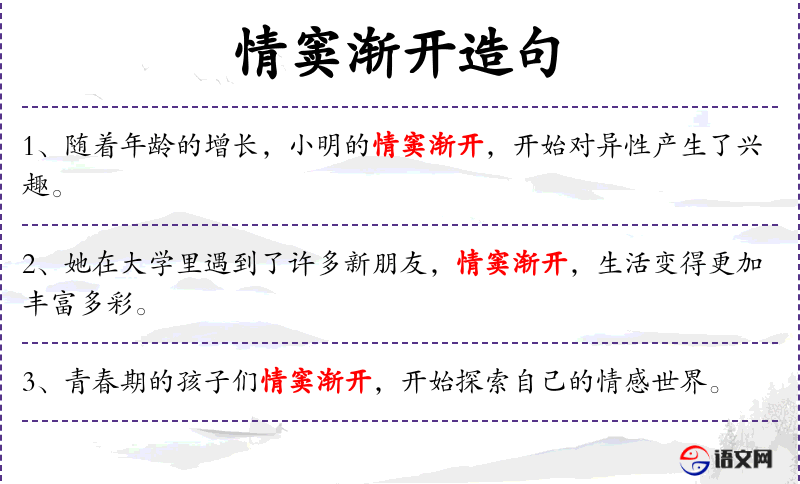 - “情窦渐开”这个表达在**文化中常用来描述青少年对爱情的初步体验和感受,反映了传统文化对青少年情感发展的关注。