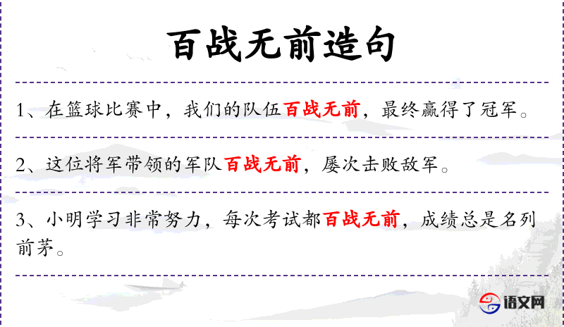6. 【百战无前】 - 所向无敌,形容人英勇善战。
